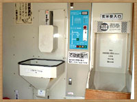 僕の心臓部はこの後ろにあります。仕組みは良く知らないけど、石臼で玄米の皮をむくように精米します。こう見えても結構パワーがあってゴーと大きな音がします。ビックリしないでね。